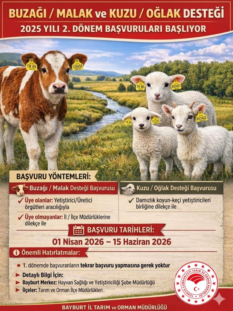 Buzağı/Malak ve Kuzu/Oğlak Desteği 2025 Yılı 2. Dönem Müracaatları Başlıyor.