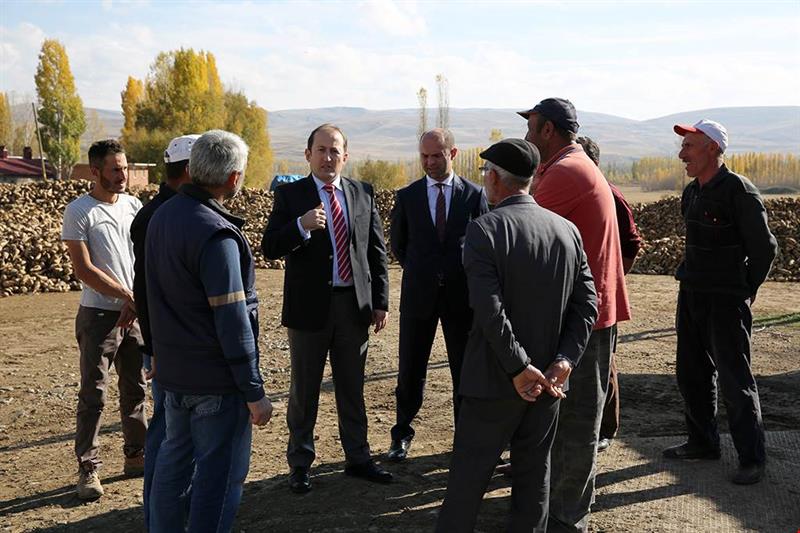 Vali Pehlivan, Konursu Köyü'ndeki ziyaret ve incelemelerinin ardından aynı bölgede bulunan Konursu Köyü Pancar Alım Merkezi'ne geçti. Burada ilimizde önemli miktarlarda ekiminin yapıldığı ve hasat sezonunun devam ettiği Şeker Pancarı üretimi hakkında üreticilerle bilgi alışverişinde bulunan Vali Pehlivan, ihtiyaç, sorun ve talepleri dinledi. Vali Pehlivan, ziyareti sırasında kendisine eşlik eden İl Gıda, Tarım ve Hayvancılık Müdürü Abdulkadir Karabulut ve üreticilerden bilgiler alarak tespit ve değerlendirmelerde bulundu. Üreticilerin merkeze boşaltma lifti kurulması talebine konuyla ilgili çalışmaların devam ettiğini bildirerek karşılık veren Vali Pehlivan, hasat sezonunun hayırlı ve bereketli olması temennisinde bulundu.